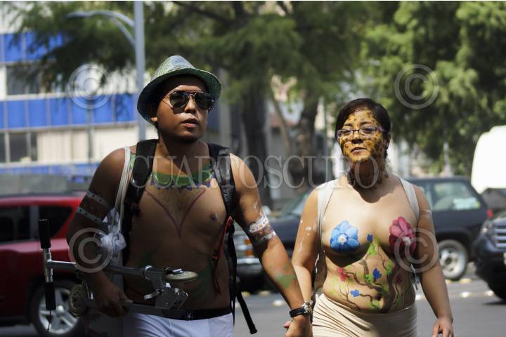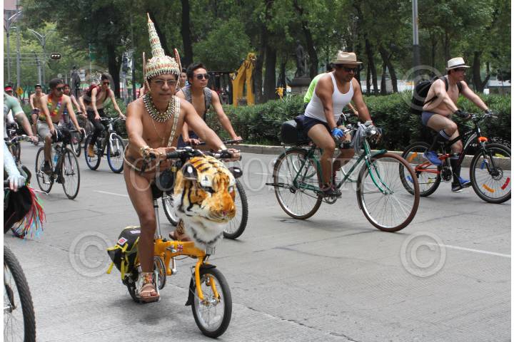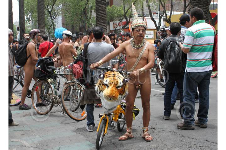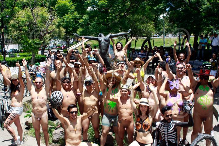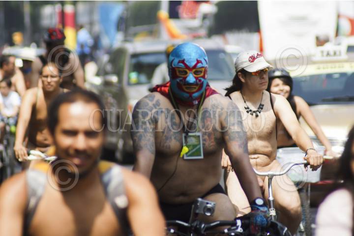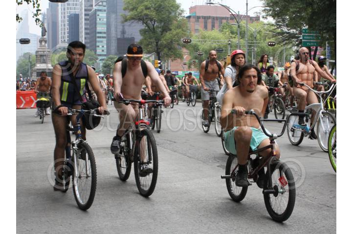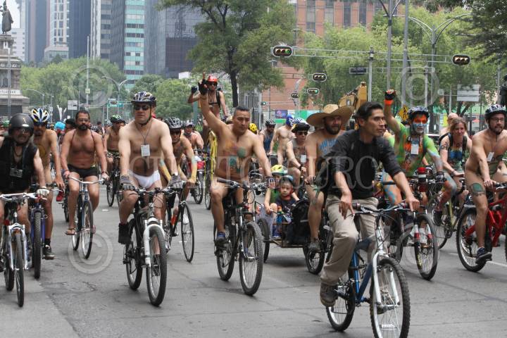 MÉXICO, D.F., 08JUNIO2013.- Aspectos de la Octava Rodada al Desnudo, paseo ciclistico que parte de la Estela de Luz con destino final a la Fuente de Cibeles. FOTO: PEDRO ANZA /CUARTOSCURO.COM