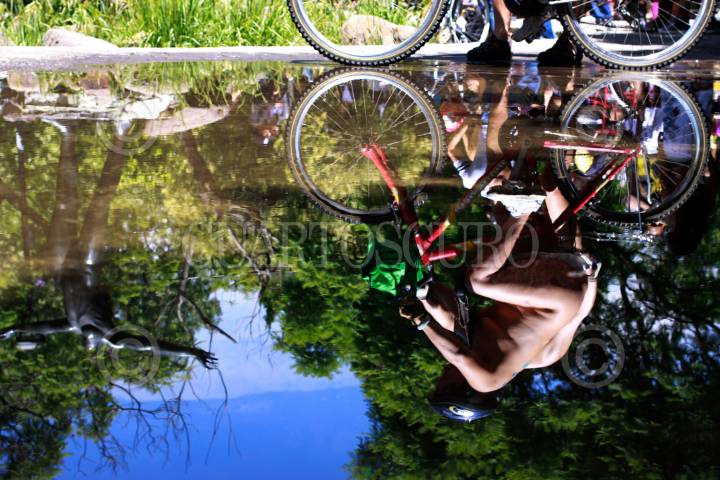 CIUDAD DE MEXICO, 13JUNIO2025.- Un hombre espera, desnudo, el comienzo de la Rodada al Desnudo, una manifestación en pro de los derechos viales de ciclistas y peatones. La rodada partió de Monumento a la Revolución, pasando por Paseo de la Reforma, Juárez, Balderas, Cuauhtémoc y retornando a Monumento a la Revolución. La Rodada al Desnuedo también es una forma de concientizar sobre el uso excesivo de combustibles y su impacto ambiental. FOTO: MAGDALENA MONTIEL/CUARTOSCURO.COM