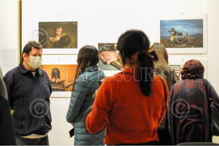 Invitados a la inauguración de la exposición del Concurso Latinoamericano de Fotografía Cuartoscuro 2022,” Nuestra Huella en el Planeta”, recorren los pasillos del salón donde se encuentra montada la obra grafica.