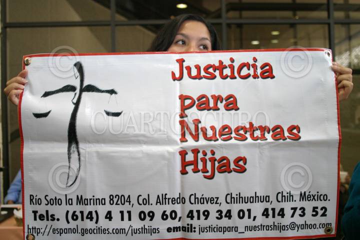 México, D.F. 20 JULIo 2004.- Integrantes de la organización Justicia para nuestras hijas, se presentaron en el salon de los Cristales donde María López Urbina, fiscal especial para los homicidios de mujeres de Juárez comparecia ante la comisión del senado. FOTO: Sandra Perdomo/CUARTOSCURO.COM