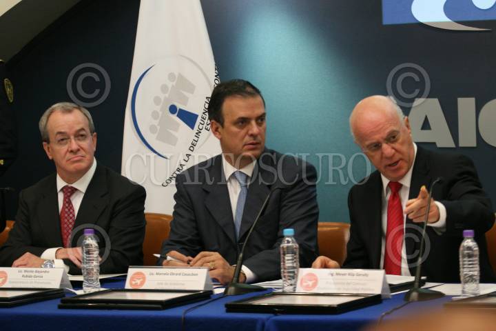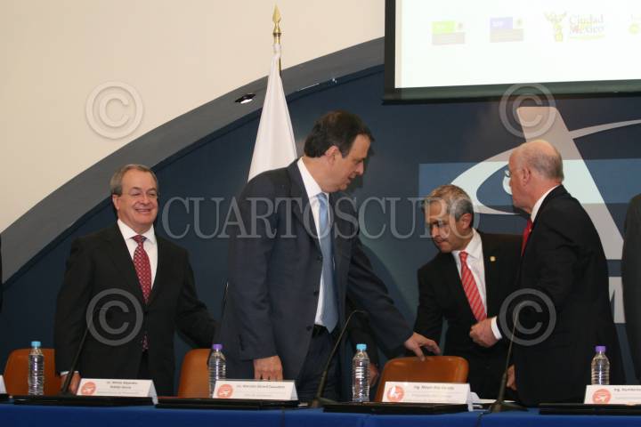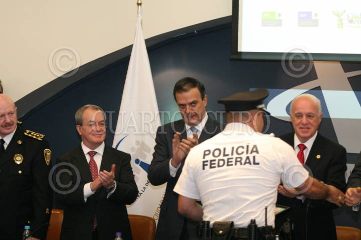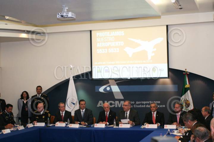 MÉXICO D.F., 24FEBRERO2010.- Marcelo Ebrard Casaubon, Jefe de Gobierno del Distrito Federal, acompañado de Manuel Mondragón y Kalb, Monte Alejandro Rubido García, Subsecretario de Prevención Vinculación y Derechos Humanos, Meyer Klip Gervitz, Presidente del Consejo Ciudadano, Humberto Treviño Landis, Subsecretario de Transportes de la SCT, Miguel Ángel Mancera, Procurador del D.F. y Héctor Velázquez y Corona, Director General del AICM, presidio la ceremonia del Primer Aniversario Protejamos Nuestro Aeropuerto, y donde se ralizó la entrega de reconocimientos a elementos de la secretaria de seguridad del D.F. y de la Policía Federal. FOTO: GUILLERMO PEREA/CUARTOSCURO.COM