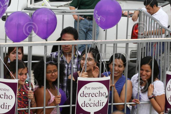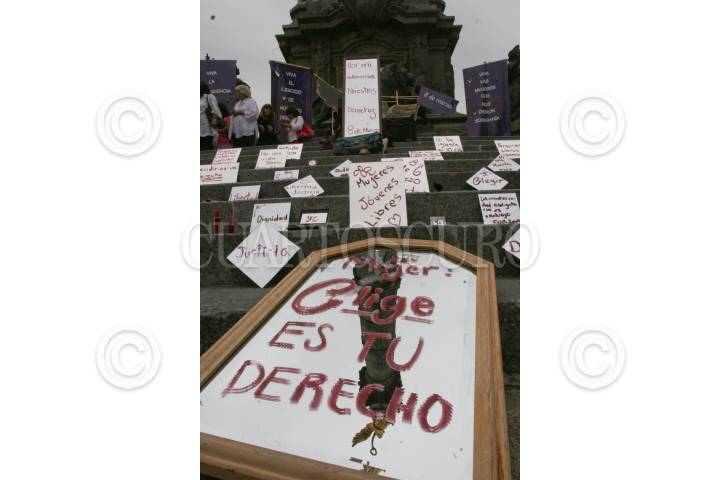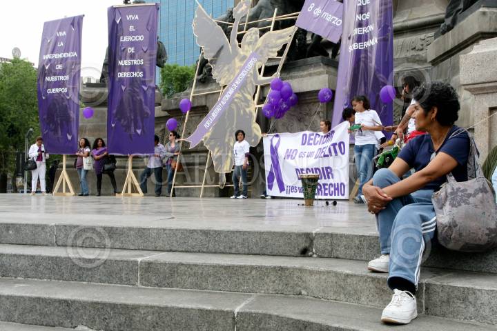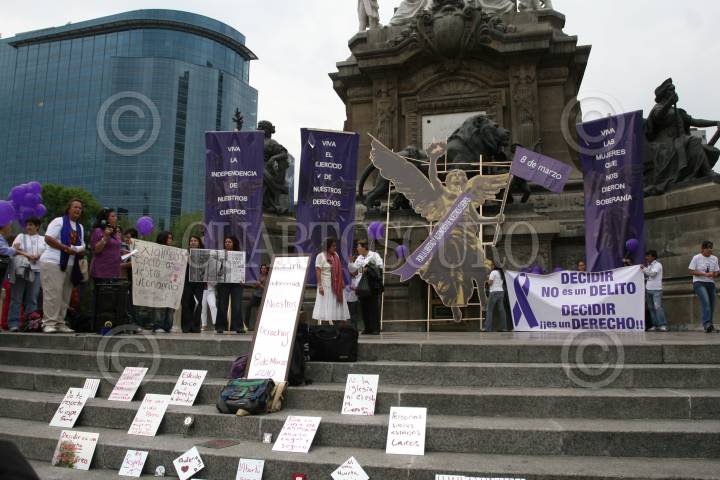 MÉXICO D.F., 08MARZO2010.- Mujeres integrantes de Nuestro Derecho a Decidir, se manifestaron en el Ángel de la Independencia a favor del aborto y de los derechos de la mujer, esto al conmemorarse el Día Internacional de la Mujer . FOTO: GUILLERMO PEREA/CUARTOSCURO.COM