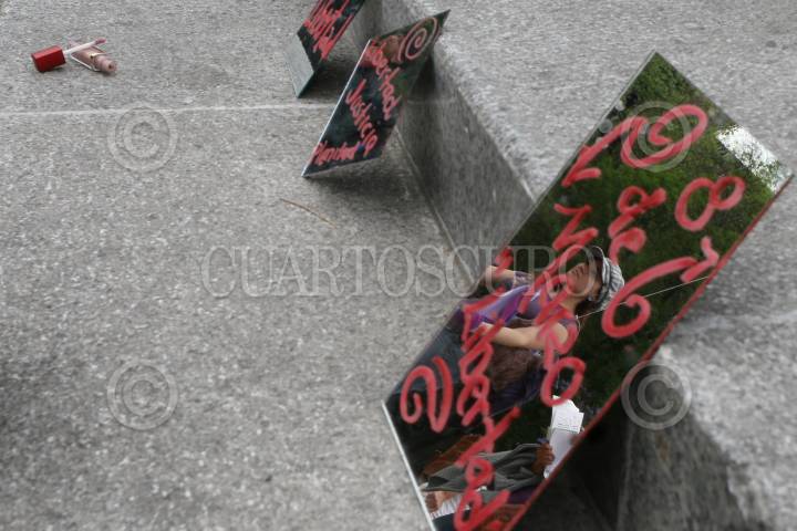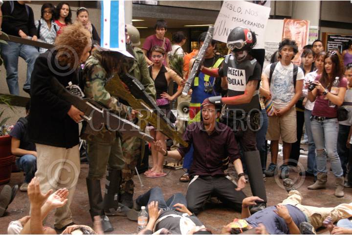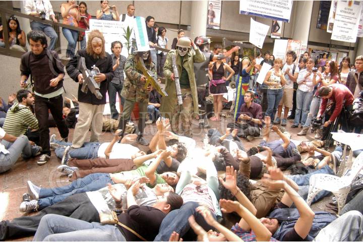 MÉXICO D.F., 12MARZO2010.- Familiares y amigos de los jóvenes victimas de la violencia que se vive en Ciudad Juárez realizaron un perfomance en la facultad de Economía de la UNAM en donde se realizó un foro en el cual se abordo esta problemática. FOTO: IVÁN MENDEZ/CUARTOSCURO.COM