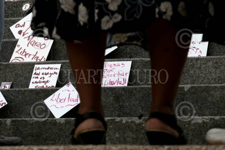 MÉXICO D.F., 08MARZO2010.- Mujeres integrantes de Nuestro Derecho a Decidir, se manifestaron en el Ángel de la Independencia a favor del aborto y de los derechos de la mujer, esto al conmemorarse el Día Internacional de la Mujer. FOTO: GUILLERMO PEREA/CUARTOSCURO.COM