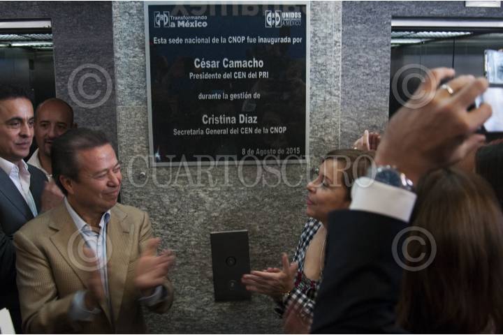 MÉXICO, D.F., 08AGOSTO2015.- César Camacho Quiroz, presidente nacional del PRI, y la senadora Cristina Díaz Salazar, dirigente de la CNOP, inauguraron la nueva sede de la Confederación Nacional de Organizaciones Populares (CNOP). FOTO: DIEGO SIMÓN SÁNCHEZ /CUARTOSCURO.COM