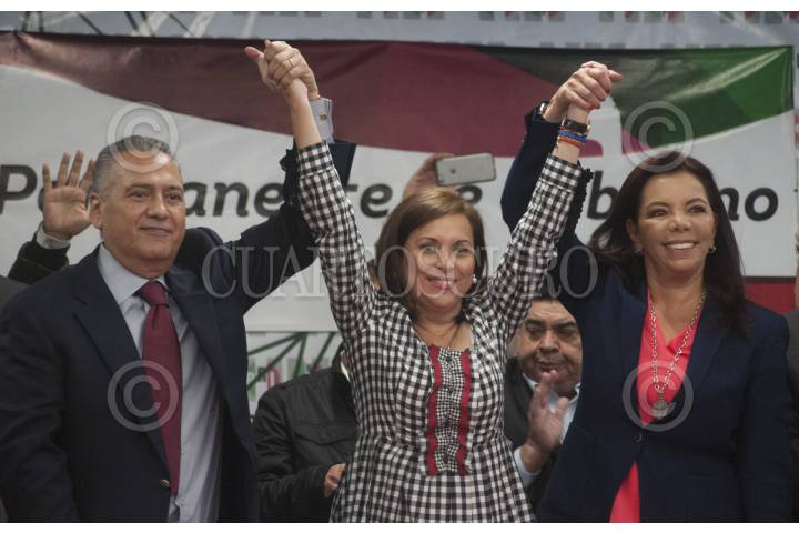 MÉXICO, D.F., 08AGOSTO2015.- Manlio Fabio Beltrones, coordinador de la fracción del PRI en la Cámara de Diputados; la senadora Cristina Díaz Salazar, dirigente de la CNOP, y la diputada Carolina Monroy del Mazo, durante la instalación de la Comisión Nacional Permanente de Gobiernos de la Confederación Nacional de Organizaciones Populares, en el auditorio de la nueva sede de la CNOP, donde respaldaron la candidatura de Manlio y del Mazo para llegar a la dirigencia nacional del PRI. FOTO: DIEGO SIMÓN SÁNCHEZ /CUARTOSCURO.COM