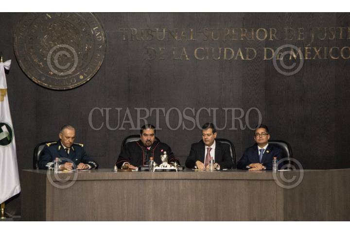 CIUDAD DE MÉXICO, 05SEPTIEMBRE2018.- Salvador Cienfuegos Zepeda, secretario de la Defensa Nacional, Álvaro Pérez Juárez, Magistrado presidente del Tribunal Superior de Justicia de la Ciudad de México (TSJCDMX), José Ramón Amieva, jefe de gobierno de la Ciudad de México y Leonel Luna Estrada, diputado de la Asamblea Legislativa del Distrito Federal, durante la primera sesión en la nueva sede del TSJCDMX en la calle de Niños Héroes de la colonia Doctores. FOTO: MISAEL VALTIERRA /CUARTOSCURO.COM
