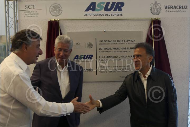 VERACRUZ, VERACRUZ, 14MARZO2017.- Fernando Chico Pardo, presidente el Consejo de Administración de Aeropuertos del Sureste (ASUR); Gerardo Ruíz Esparza, secretario de Comunicaciones y Transportes, y Miguel Ángel Yunes Linares, gobernador de la entidad, inaugurarón el nuevo edificio terminal del Aeropuerto de Veracruz "Heriberto Jara Corona", el cual desde hace 50 años no gozaba de nuevas instalaciones. FOTO: ILSE HUESCA /CUARTOSCURO.COM
