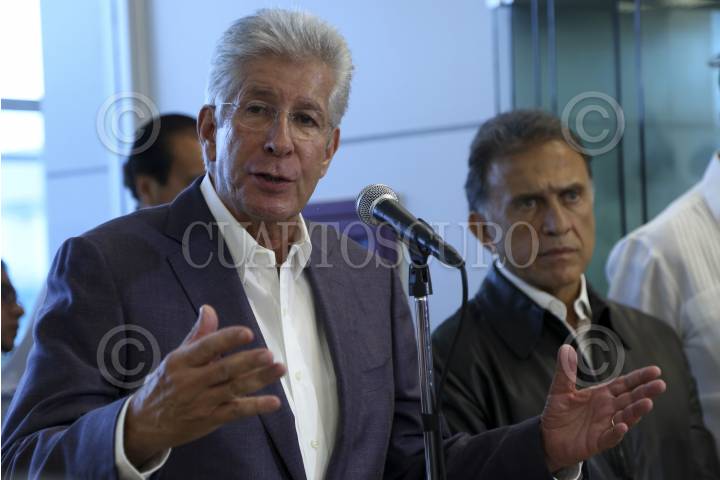 VERACRUZ, VERACRUZ, 14MARZO2017.- Yuriria Mascott Pérez, subsecretaria de transporte de la SCT; Miguel Ángel Yunes Linares, gobernador de la entidad; Gerardo Ruíz Esparza, secretario de Comunicaciones y Transportes, y Fernando Chico Pardo, presidente el Consejo de Administración de Aeropuertos del Sureste (ASUR); durante la inauguración del edificio terminal del Aeropuerto de Veracruz "Heriberto Jara Corona", el cual desde hace 50 años no gozaba de nuevas instalaciones. FOTO: ILSE HUESCA /CUARTOSCURO.COM