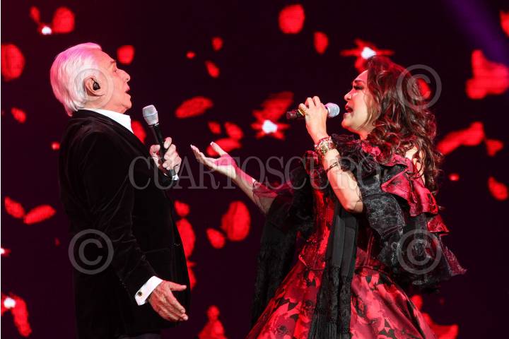 Aida Cuevas, durante ensayo de dueto de canción con el cantante Enrique Guzmán.