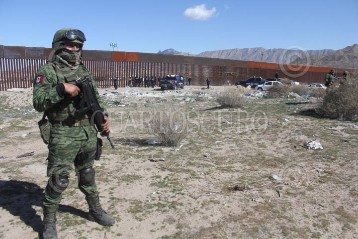 CIUDAD JUÁREZ, CHIHUAHUA, 09ABRIL2018.- Este lunes la Oficina de Aduanas y Protección Fronteriza de los Estados Unidos (CBP, por sus siglas en inglés), anunció la construcción del muro fronterizo en el sector de Santa Teresa, con el fin de blindar la seguridad y reforzar el trabajo de la Patrulla Fronteriza en el sector para frenar el flujo de indocumentados, droga y armas a través del desierto de Nuevo México. FOTO: NACHO RUIZ /CUARTOSCURO.COM