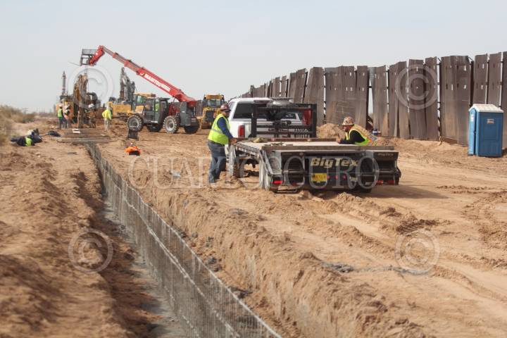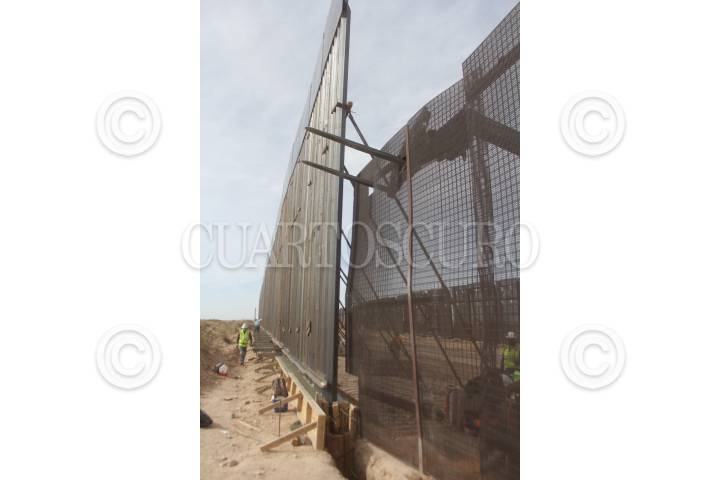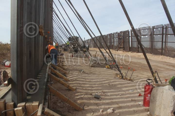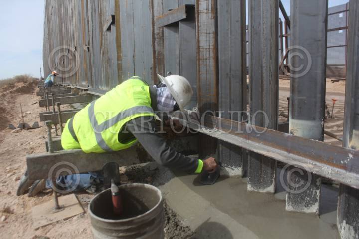 Trabajadores se encuentran terminando a marchas forzadas una parte del muro fronterizo encargado por Donald Trump, en la frontera con Nuevo México y Texas, el nuevo muro tendrá una altura de 9.75 metros de altura.