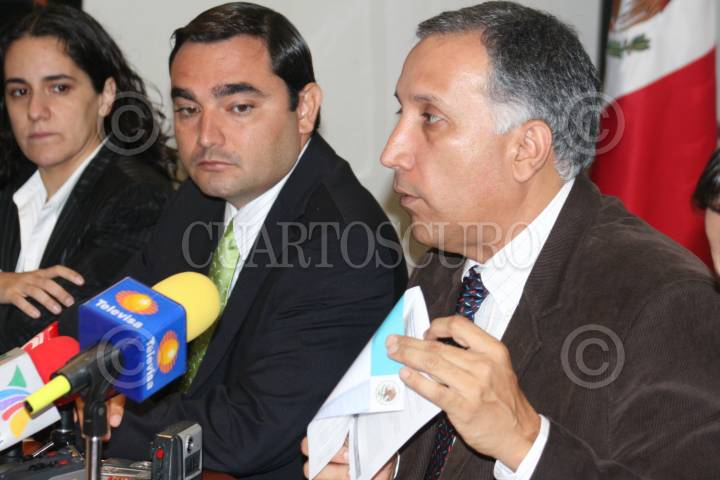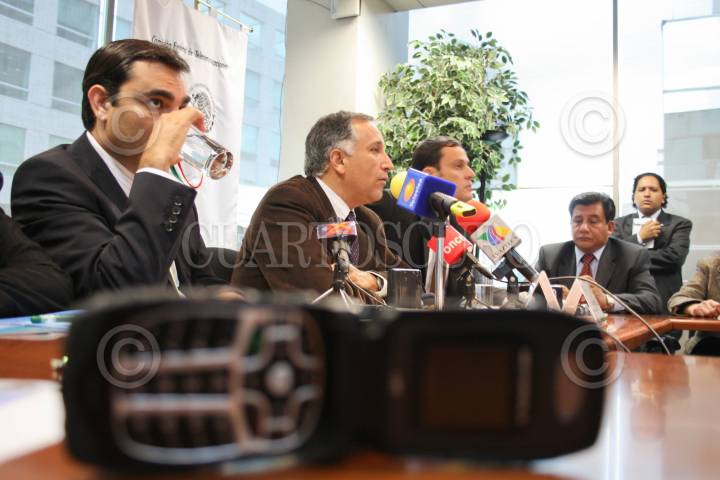 MÉXICO, D.F., 04JULIO2008.- Antonio Morales de la Peña, Procurador Federal del Consumidor y Héctor Osuna titular de la COFETEL, en conferencia de prensa, donde dio a conocer que los usuarios de teléfonos podrán conservar sus numero a un cuando cambien de compañía. FOTO: RICARDO CASTELAN /CUARTOSCURO.COM