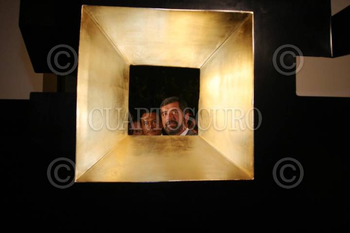 México, D. F. 16 Abril 2004.- Juan Ramón de la Fuente, rector de la Universidad Nacional Autónoma de México y Joaquín Hendrikcs, gobernador de Quintana Roo durante el recorrido por la exposición Geometría Emocional del maestro Sebastián. FOTO: Nelly Salas/CUARTOSCURO.COM