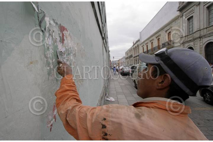OAXACA, OAXACA 02DICIEMBRE2006.- Ciudadanos oaxaqueños, comiezan a dar manteniemiento a las casas del centro de la ciudad después de los disturbios ocurridos entre integrantes dela APPO y elementos de la PFP. FOTO: CARLOS SALINAS /CUARTOSCURO.COM