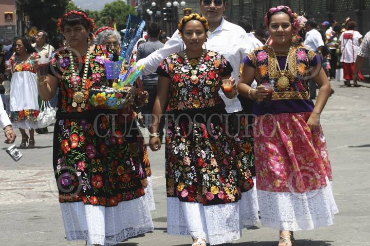 MÉXICO, D.F., 13AGOSTO2011.- Un desfile partió del Zócalo con la participación de diferentes contingentes étnicos nacionales, entre los cuales destacaron los danzantes oaxaqueños, con rumbo a el Monumento a la Revolución en donde se realiza la Feria de los Colores, Sonidos y Sabores. FOTO: MOISÉS PABLO/CUARTOSCURO.COM