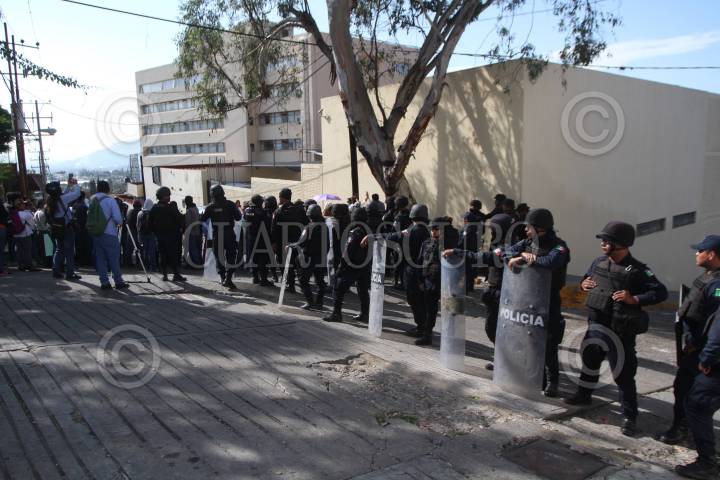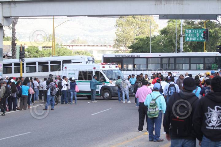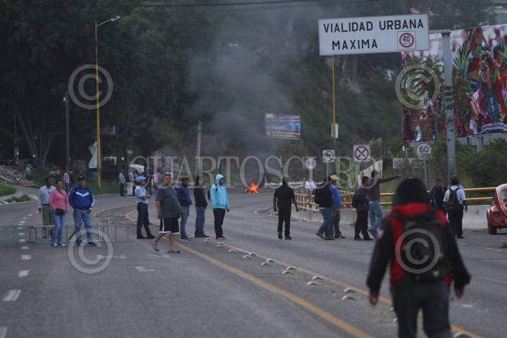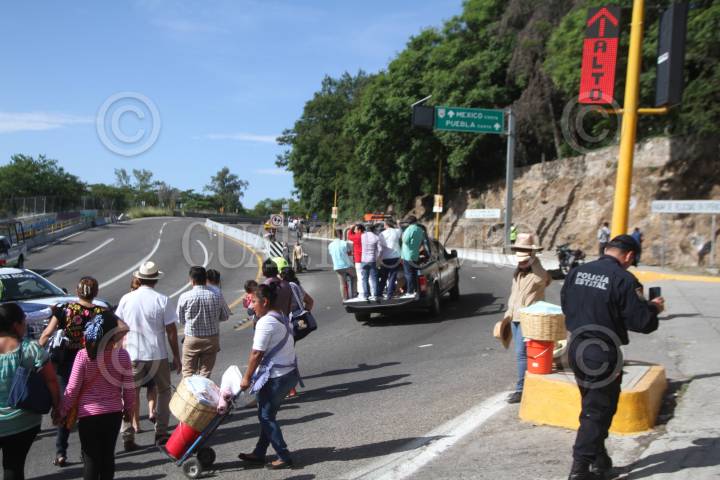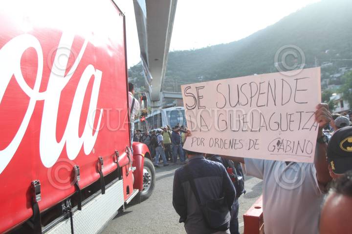 OAXACA, OAXACA, 01AGOSTO2016.- Profesores de la sección 22 de la Coordinadora Nacional de los Trabajadores de la Educación (CNTE) efectúan 3 bloqueos, como parte de los acuerdos de la asamblea estatal, misma que definió boicotear el festival de la Guelaguetza este lunes. Los profesores mantienen tomados los 3 accesos principales al Cerro del Fortín, en tanto policías estatales vigilan los cercos portando equipo anti motín. Asimismo, los uniformados transportan grupos de turistas, abordo de las camionetas de la corporación, hasta el auditorio. FOTO: ARTURO PÉREZ ALFONSO /CUARTOSCURO.COM