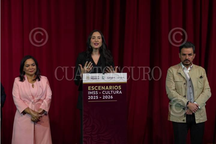 CIUDAD DE MÉXICO 19AGOSTO2025.- Zoé Robledo, titular del Instituto Mexicano del Seguro Social y Claudia Curiel, titular de la secretaria de cultura, encabezaron la presentación de la función Inaugural "La Obra de Bottom" la cual marca el arranque del programa Escenarios IMSS-Cultura 2025-2026. FOTO:ROGELIO MORALES /CUARTOSCURO.COM