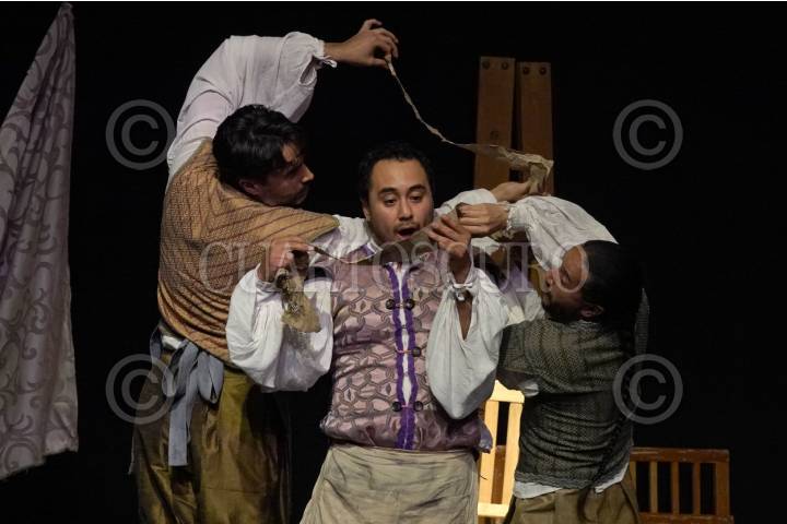 CIUDAD DE MÉXICO 16AGOSTO2025.- Se llevó acabo la función Inaugural "La Obra de Bottom" inspirada en Shakespeare, presentada por la Piara y Brujas Producciones, dirección de Iona Weissberg y Aline De la Cruz, elenco de Artús Chávez, Fernando Córdova y Jerónimo Best en el Teatro San Jerónimo Independencia. FOTO:ROGELIO MORALES /CUARTOSCURO.COM