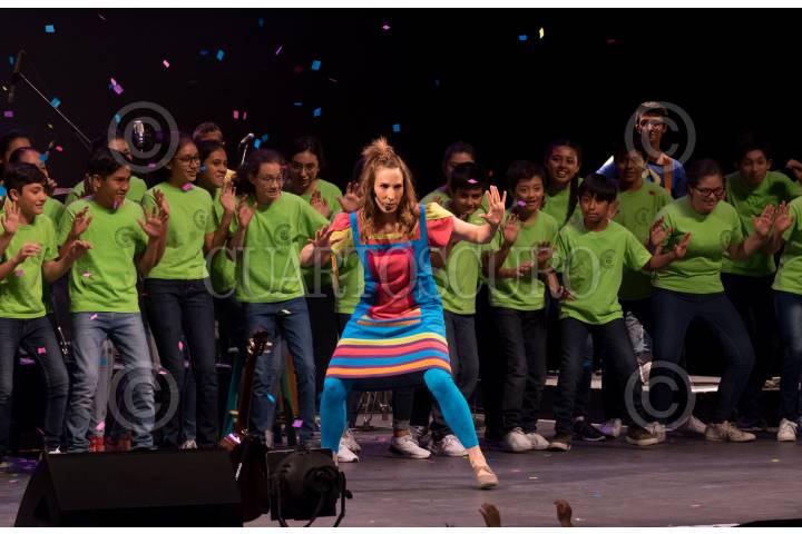 CIUDAD DE MÉXICO, 28ABRIL2019.- Se presentó la obra de teatro musical de la actriz Mariana Mallol "Aguita de limón con chia y 20 años de canciones", en la que celebró 20 años de trayectoria musical junto con los niños y jóvenes del coro de la UNAM, en el Teatro del Esperanza Iris. FOTO: GRACIELA LÓPEZ /CUARTOSCURO.COM