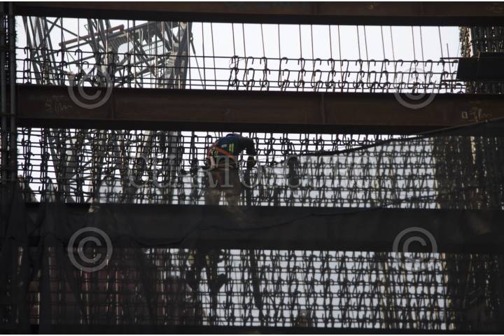 MÉXICO, D.F., 02MAYO2014.- El tercer día del mes de mayo se celebra el Día de la Santa Cruz o como se conoce coloquialmente "día del albañil". "In hoc signo vincis", 'con esta señal vencerás', fueron las palabras del emperador romano Constantino cuando colocó una cruz frente a su ejército para que vencieran sin temor al enemigo. Los maestros de la construcción arriesgan su vida cotidianamente y festejan su día trabajando. FOTO: MARÍA JOSÉ MARTÍNEZ /CUARTOSCURO.COM