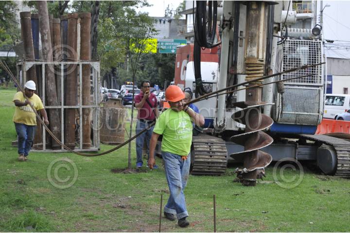 MÉXICO, D.F., 26AGOSTO2015.- A pesar de las manifestaciones contra el deprimido de la avenida Mixcoac al cruce con Insurgentes, trabajadores continúan con las de excavaciones y el retiro de árboles sobre el camellón de Circuito Interior. FOTO: SAÚL LÓPEZ /CUARTOSCURO.COM
