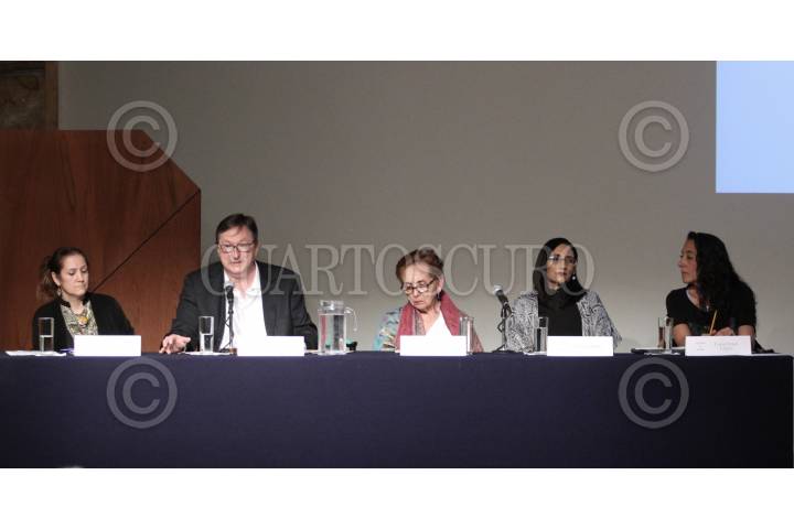 CIUDAD DE MÉXICO, 13NOVIEMBRE.- Cecilia Santacruz, Luis Rius, Susana Campos , Ana Garduño y Luisa Irazú López, durante el Conversatorio 70 años del Salón de la Plástica Mexicana, en la Sala Manuel M. Ponce, Palacio de Bellas Arte. FOTO: ROGELIO MORALES /CUARTOSCURO.COM