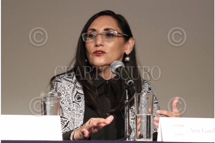 CIUDAD DE MÉXICO, 13NOVIEMBRE.- Ana Garduño, durante el Conversatorio 70 años del Salón de la Plástica Mexicana, en la Sala Manuel M. Ponce, Palacio de Bellas Arte. FOTO: ROGELIO MORALES /CUARTOSCURO.COM