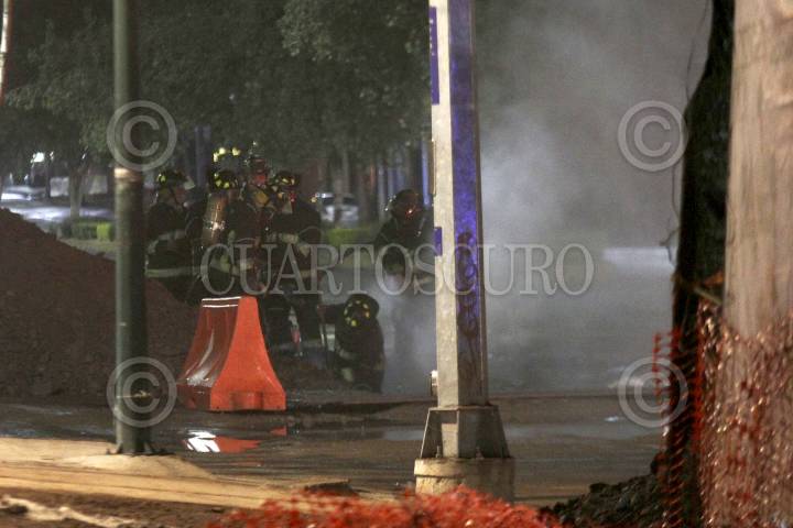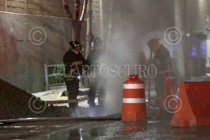Personal de obras que realizan perforaciones para el drenaje, rompieron la tubería de gas natural en calles de la colonia Periodistas, provocando intensa movilización de servicios de emergencia en la zona.