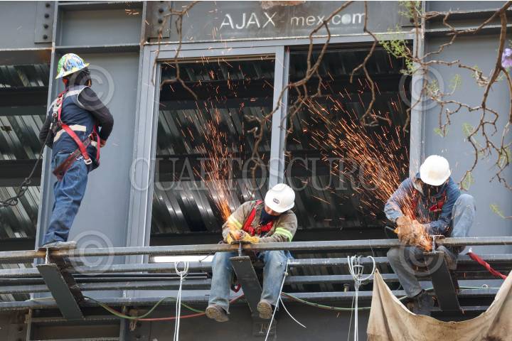 CIUDAD DE MÉXICO, 05MARZO2025.- Obreros soldadores trabajan en una construcción de avenida Reforma, analista económicos ham señalado a la industria de la construcción como una de las más afectadas por aumento de aranceles por parte de Estados Unidos. FOTO: MOISÉS PABLO/CUARTOSCURO.COM