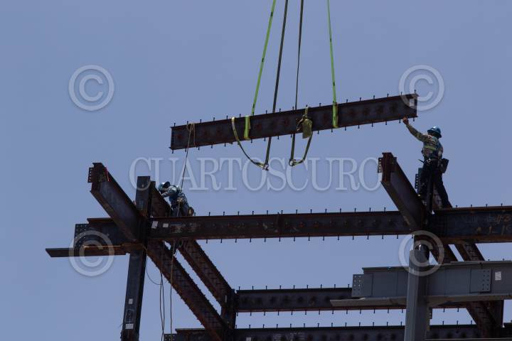 CIUDAD DE MÉXICO, 11JUNIO2024.- Obreros laboran en las alturas en la nueva construcción de avenida Juárez. FOTO: MOISÉS PABLO/CUARTOSCURO.COM