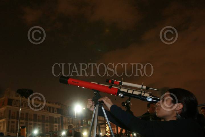 MÉXICO D.F., 31ENERO2009.- Una señora observa a través de un telescopio algunos de los planetas que se observaron esta noche dentro del programa “Noche de las Estrellas”. FOTO:SÁSHENKA GUTIÉRREZ/CUARTOSCURO.COM