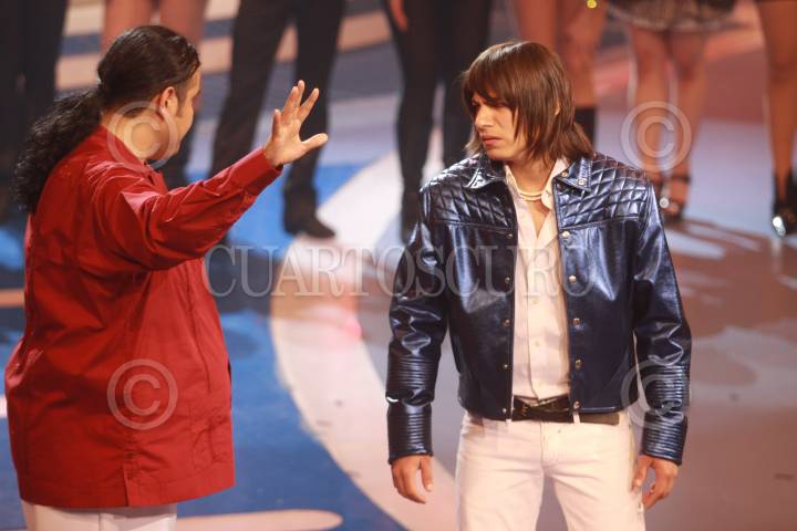 MÉXICO, D.F., 17MAYO2009.- El cantante Rigo Tovar Junior es el expulsado de esta noche mietras el cantante Paolo Botti observa durante la emisión del programa en el programa de "El Gran Desafío" FOTO: SÁSHENKA GUTIÉRREZ/CUARTOSCURO.COM