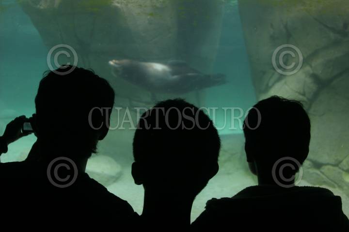 MÉXICO, D.F., 29AGOSTO2009.- Tres niños observa una foca en el zoológico de Chapultepec donde cientos de capitalinos aprovechan los fines de semana para divertirse un poco. FOTO: RICARDO CASTELAN/CUARTOSCURO.COM