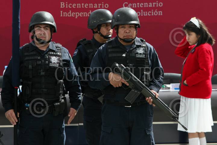MÉXICO, D.F., 18ENERO2010.- Una niña observa a los elementos de la policía federal que acudieron al programa, escuela segura, fortalecimiento. FOTO: SAÚL LÓPEZ/CUARTOSCURO.COM
