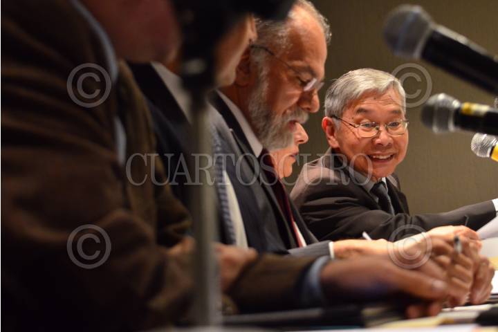 MÉXICO, D.F., 19MAYO2015.- Miembros del Comité Técnico Electoral tuvieron una audiencia acerca del Proyecto de Apoyo para la Observación Electoral del Instituto Nacional Electoral, con integrantes de organizaciones civiles en el marco del futuro proceso electoral de los comicios del 07 de junio. Asistieron los miembros del Comité: Alfredo Figueroa Fernández, Víctor Manuel Alarcón Olguín, Héctor Marcos Díaz, el presidente del Comité José de Jesús adoro con, la Dra. Jacqueline Peschard, y el secretario Dr. Dong Nguyen. En la conferencia mencionaron que hasta el momento se han aprobado 39 proyectos que recibirán un presupuesto de 21 millones de pesos. FOTO: MARÍA JOSÉ MARTÍNEZ /CUARTOSCURO.COM