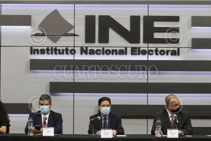 Héctor Díaz, Salvador Romero y Horacio Vives, durante la conferencia de resultados preliminares por observadores en elecciones.