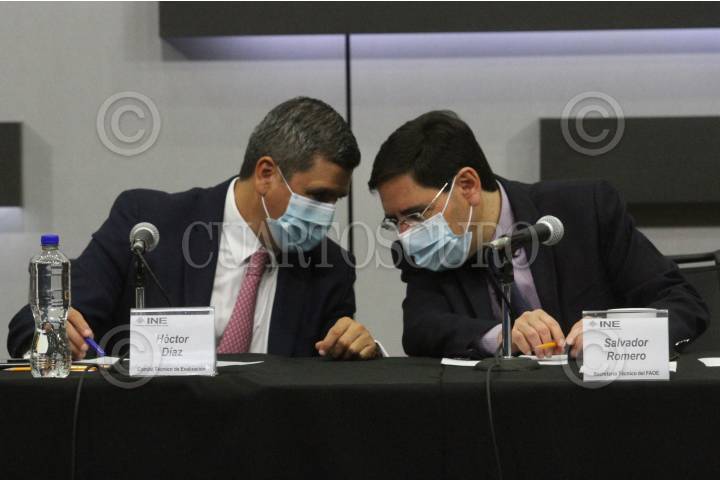 Héctor Díaz y Salvador Romero, durante la conferencia de resultados preliminares por observadores en elecciones.