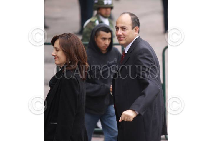 MÉXICO, D.F., 21NOVIEMBRE2009.- Fernando Gómez Mont, secretario de Gobernación acompañado por su hija a su llegada a Palacio Nacional donde el secretario observó El desfile conmemorativo del 99 aniversario de la Revolución mexicana. FOTO: SÁSHENKA GUTIÉRREZ/CUARTOSCURO.COM