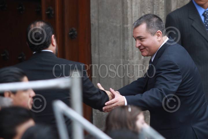 MÉXICO, D.F., 21NOVIEMBRE2009.- Genaro García Luna titular de la SSP Federal a su llegada a Palacio Nacional donde el secretario observó El desfile conmemorativo del 99 aniversario de la Revolución mexicana. FOTO: SÁSHENKA GUTIÉRREZ/CUARTOSCURO.COM