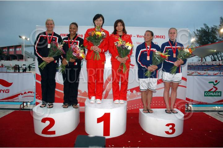 BOCA DEL RÍO, VERACRUZ. 16ABRIL2010.- Al finalizar el primer día de actividades de la Serie mundial de clavados FINA/Li-Ning 2010. El canadiense Alexandre Despiate obtuvo el oro en trampolín de tres metros. Las chinas He Zi y Wu Minxia se alzaron con la presea dorada en trampolín de tres metros sincronizados, mientras que los chinos Yuan Cao y Yanquan Zhang lograron el primer sitio en plataforma de metros sincronizados. FOTO: JOSÉ CANDELARIO/CUARTOSCURO.COM