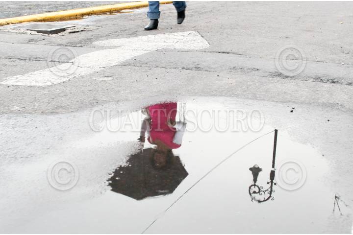 MÉXICO, D.F., 11SEPTIEMBRE2009.- Una mujer con su paraguas, se refleja en un charco ocasionado por las fuertes lluvias en el valle de México. FOTO: SÁSHENKA GUTIÉRREZ/CUARTOSCURO.COM