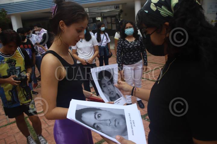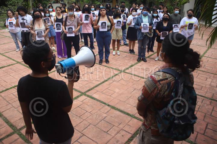 Estudiantes de la Facultad de Ciencias Antropológicas de la Universidad Autónoma de Yucatán realizaron un pase de lista de los 43 normalistas que desaparecieron hace 8 en Iguala, Guerrero.