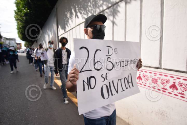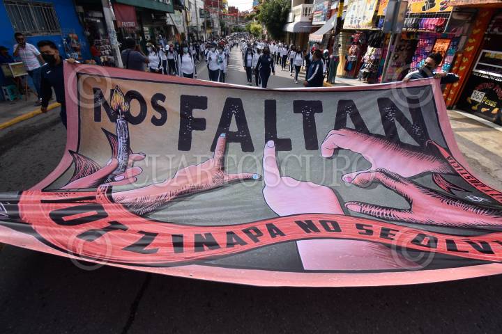 Normalistas del Frente Unido de Normales Públicas del Estado de Guerrero (FUNPEG) marcharon para conmemorar el octavo aniversario de la desaparición de los 43 normalistas de Ayotzinapa.