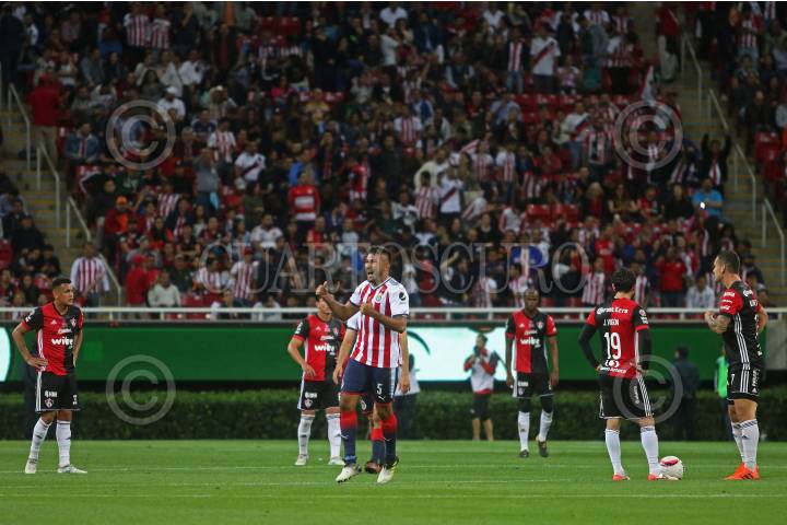 ZAPOPAN, JALISCO, 28FEBRERO2018.- Las Chivas de Guadalajara (México) se enfrentan al Cibao (Republica Dominicana) en el Estadio Akron, en partido correspondiente a los Octavos de Final de vuelta de la Liga de Campeones de la Concacaf. En la imagen José Macias jugador de Chivas celebra su anotación durante el juego. FOTO: FERNANDO CARRANZA GARCIA / CUARTOSCURO.COM