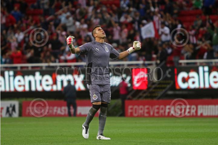 ZAPOPAN, JALISCO. 25OCTUBRE2017.- Miguel Jiménez portero de Chivas celebra la anotación de su compañero Edgardo Marín, esto en partido correspondiente a los Octavos de Final del Torneo Apertura 2017 de la Copa MX, en donde se enfrentan los equipos de la Chivas de Guadalajara frente a los Zorros del Atlas en el Estadio Chivas. El marcador al final fue de 1-0 a favor del equipo local. FOTO: FERNANDO CARRANZA GARCIA / CUARTOSCURO.COM