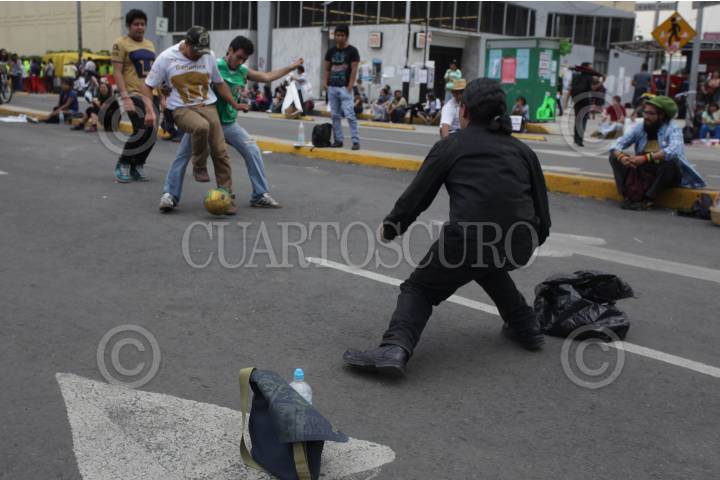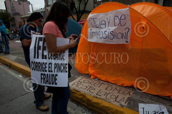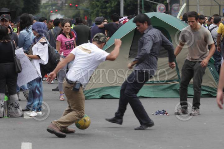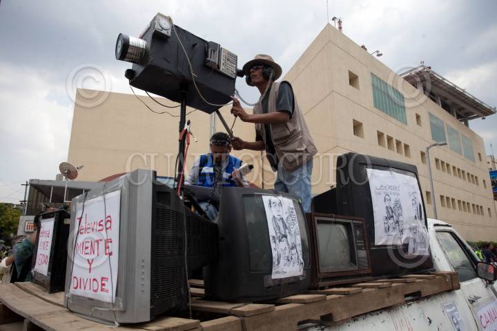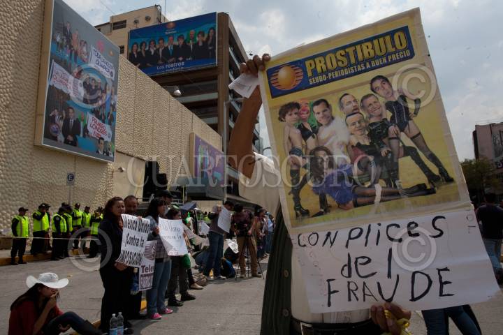 MÉXICO, D.F. 27JULIO2012.- Manifestación del movimiento #Yosoy132 en Televisa Chapultepec, quienes desde la noche de ayer bloquean los accesos por lo que consideran apoyo e imposición de esa empresa al candidato presidencial del PRI, Enrique Peña Nieto. FOTO: JUAN PABLO ZAMORA /CUARTOSCURO.COM