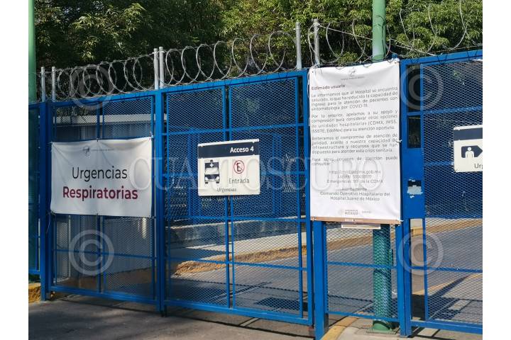 En la puerta del área de urgencias respiratorias del Hospital Juárez de la Secretaría de Salud luce una mata que informa que se encuentra saturado para dar atención a pacientes con Covid-19, y pide a los usuarios que consideren otras opciones.