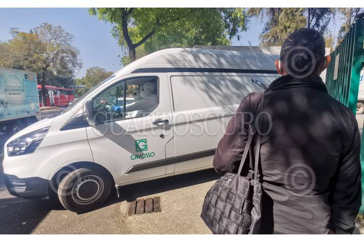 Un carroza fúnebre con trabajadores protegidos salen de la a zona de urgencias respiratorias del Hospital General de Zona 24 del IMSS.