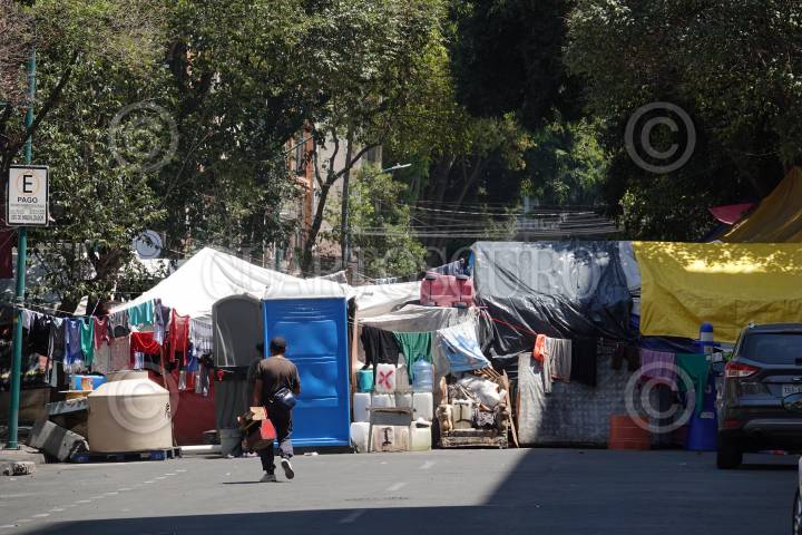 Campamento irregular en la calle de Milán en la colonia Cuauhtémoc